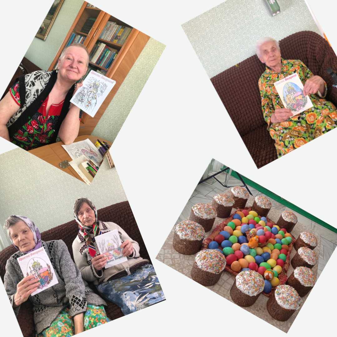 Самый главный и торжественный Христианский праздник Воскресения Христова в стационарном отделении для граждан пожилого возраста и инвалидов традиционно отпраздновали с пасхальными куличами и крашеными яицами. Организовали и приготовили особенные блюда для Пасхальной трапезы сотрудники отделения. Участники местной общественной организации «Нечаянная радость» и воспитанники Воскресной школы вручили проживающим именные пасхальные открытки, символизирующие добро, любовь, мир, согласие и искреннее желание дарить радость ближнему.