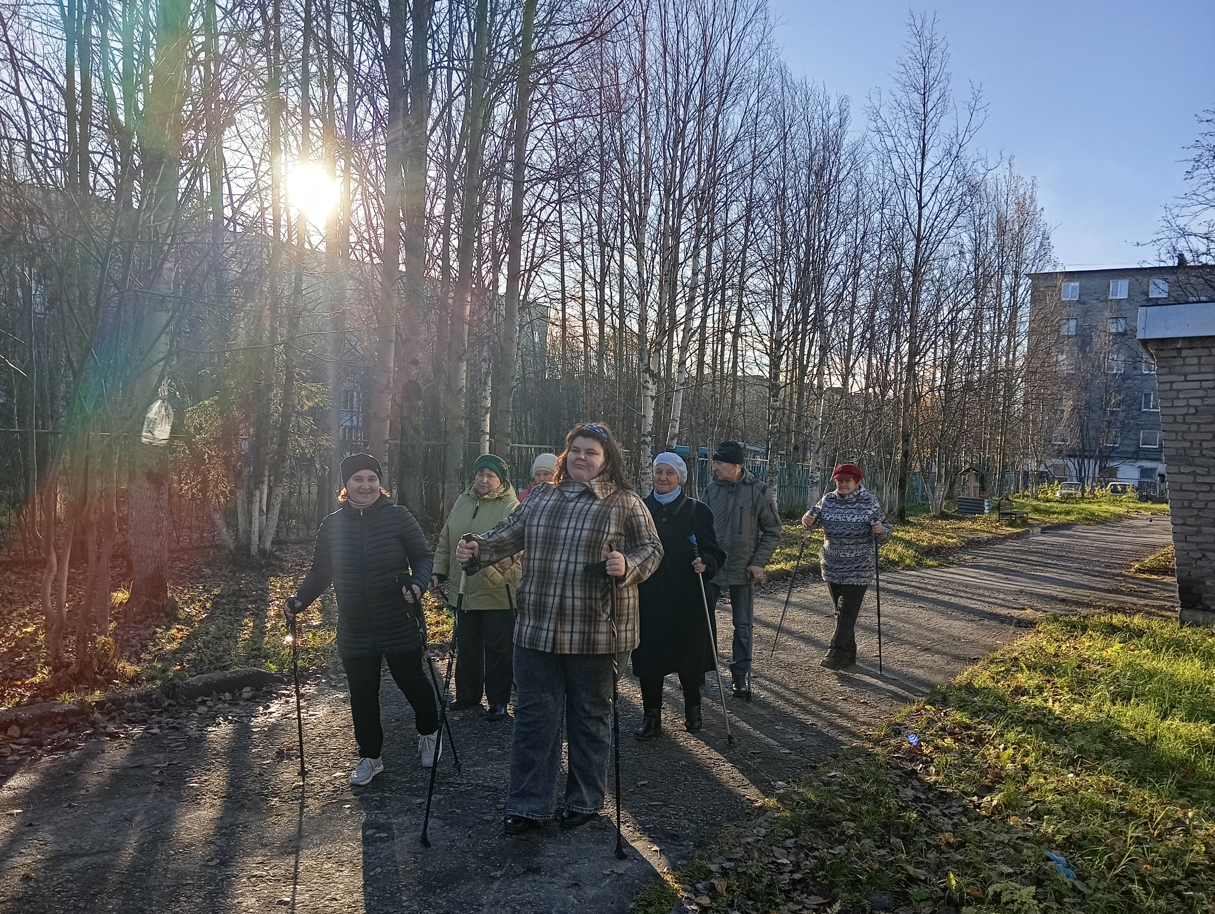 Получатели социальных услуг, отделения социальной реабилитации граждан пожилого возраста и инвалидов регулярно принимают участие в занятиях по скандинавской ходьбе. Северная ходьба доступна и проста в освоении, благодаря чему быстро завоевала любовь и популярность среди граждан серебряного возраста. Этот вид спорта способствует снижению стресса, повышает настроение и двигательную активность человека. Регулярные тренировки помогают поддержать здоровье, физическую активность, снизить риск развития заболеваний сердца, сосудов, нормализовать артериальное давление и уровень холестерина. При движении скандинавской ходьбой в организме человека задействовано 90% мышц, а использование палок способствует равномерному распределению нагрузки и улучшению осанки. Во время занятия «Шаг к долголетию» все его участники в очередной раз укрепили своё здоровье и зарядились хорошим настроением. |